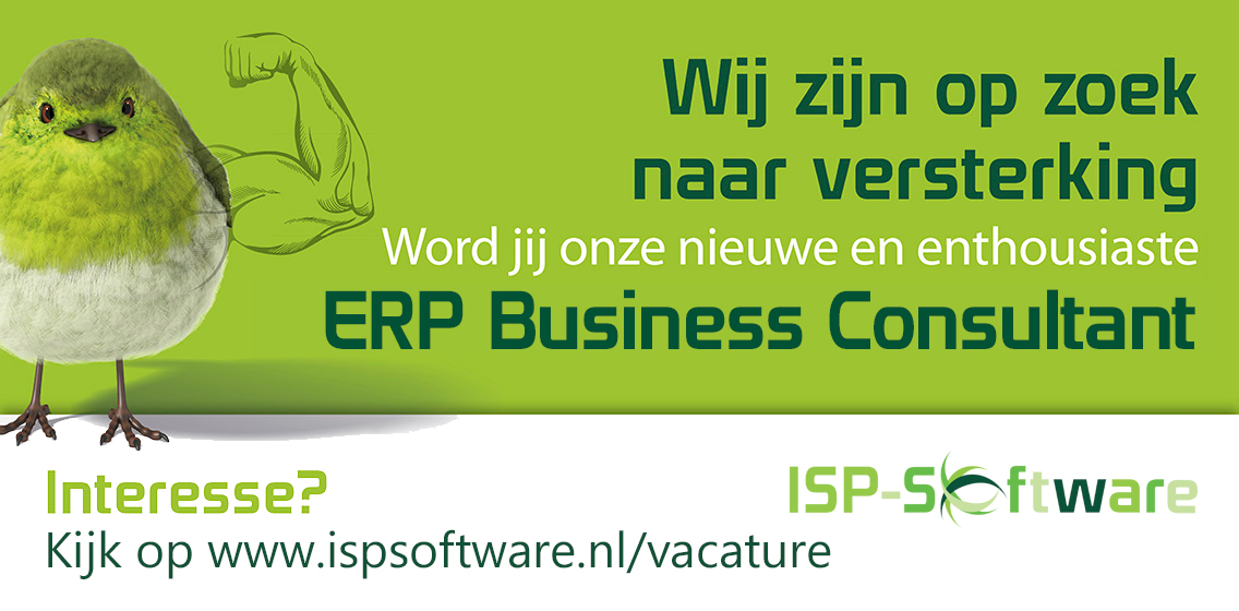 Deel uitmaken van ons team?Wij ontwikkelen door en zoeken een Senior ERP Consultant / Sales ISP-Vision / Infogroen Gedeeltelijk kantoor / hybride Full time ISP-Vision is een innovatief softwarebedrijf dat ERP-oplossingen ontwikkelt voor bedrijven, met een sterke focus op de zonweringsbranche. Onze geïntegreerde ERP-software helpt bedrijven om hun bedrijfsprocessen te stroomlijnen, van relatiebeheer en boekhouding tot inkoop, verkoop, rapportages en projectbeheer. Bij ISP-Vision zijn we trots op de langdurige relaties die we met onze klanten onderhouden – vaak al meer dan 30 jaar. Het klant-eigen business model is altijd leidend. Wij onderscheiden onszelf door vakkennis, klantgerichtheid en gebruikersvriendelijke software. Functieomschrijving:De Senior ERP Consultant / Sales speelt een belangrijke rol in de consultancy, implementatie en sales van onze ERP-software voor productiebedrijven in de zonweringsbranche. We zoeken een ERP Consultant / Sales die zowel de technische als commerciële kant van de ERP-implementatie beheerst en die bedrijven helpt bij het optimaliseren van hun processen met onze software. We zoeken iemand die de lange termijn met ons wil aangaan. Iemand die graag samen met ons wil bouwen aan een samenwerking met bestaande klanten als wel het bedrijf verder op de kaart wil zetten. Iemand die het prettig vindt om het gehele traject bij te wonen van A tot Z en goed zelfstandig te werk kan gaan.